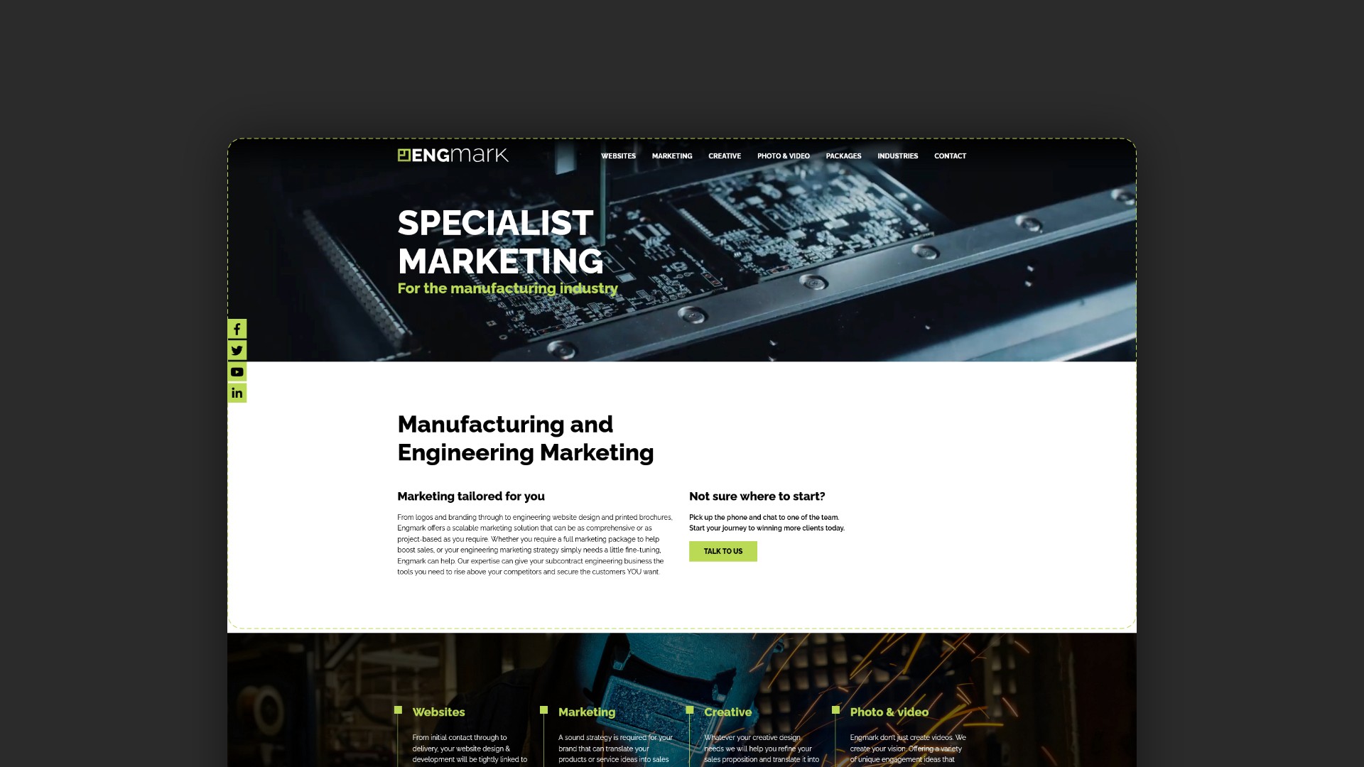Engmark is a specialist marketing agency serving the manufacturing and engineering sector. They deliver scalable marketing solutions ranging from brand identity and website design to print and full strategic support, helping subcontract engineering businesses strengthen their positioning and win higher-value clients.